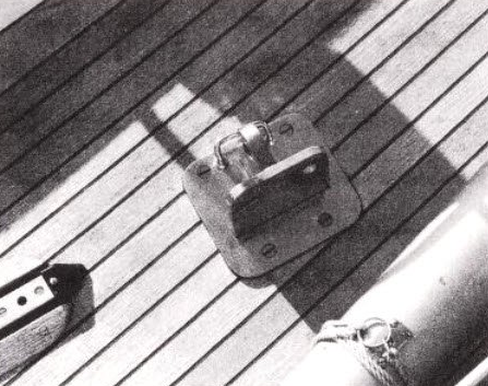 Cape Dory, Camper and Nicholson, Hunter, and some other builders use another variation, a U-bolt or padeye which bolts through the hull-to-deck flange, which must be strongly reinforced to take the kind of loads to which it will be exposed. With this type of chainplate, not only should the hull-to-deck flange be extraordinarily strong, but the joint should be reinforced by bulkheads or hanging knees which are thoroughly tied to hull and deck immediately adjacent to the chainplates.
