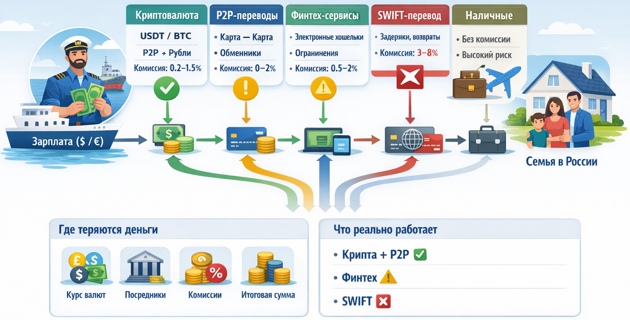 В 2026 году вопрос уже не в том, как перевести деньги из-за границы, а в том, какой маршрут выбрать. Поэтому моряки все чаще действуют как пользователи финансовых инструментов, а не просто отправители перевода – выбирают схему, считают потери и оценивают риски заранее.