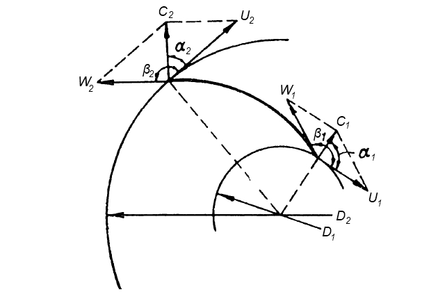 Рассматривая скоростные треугольники на рис. 2, можно заключить, что: