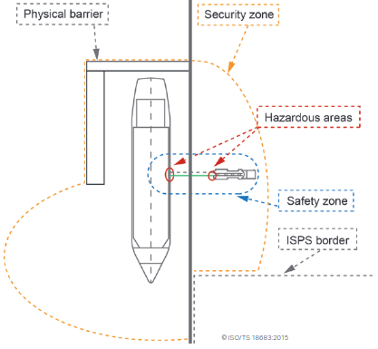 Safety and Security Zones: The use of safety and security zones around the LNG bunkering operation are necessary to prevent the creation and spread of hazardous situations that may result from the LNG bunkering. The intent is to prevent accidental gas release as a result of damage to the LNG bunkering system and to prevent ignition of any released gas. The two types of zones have different purposes and definitions.