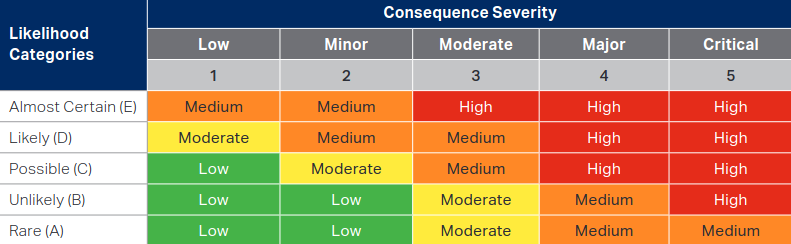 | Almost Certain (E) | Occurs 1 or more times per year |
