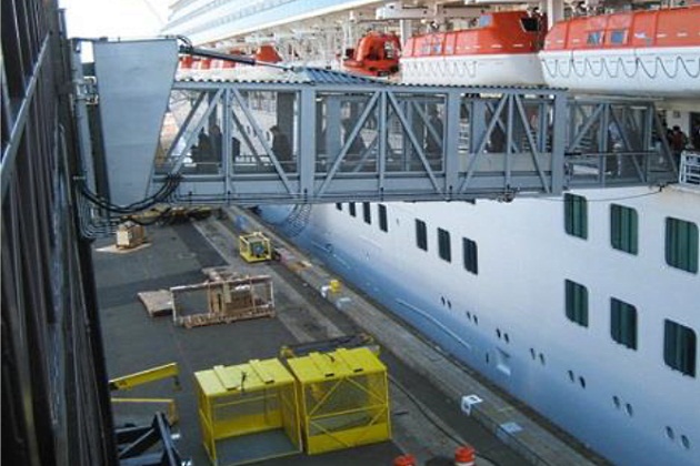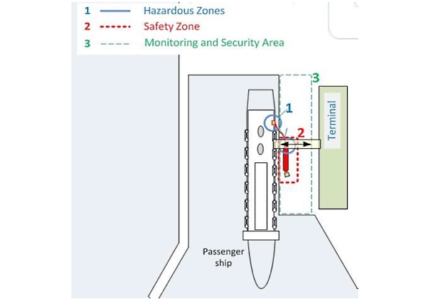 In the particular case the gangway is crossing the hazardous zone (a zone where explosive atmospheres will be present with a known frequency of occurrence). It is important to design an adequate safeguard to guarantee passenger safety and, ultimately, an acceptable risk level during passenger embarkation/disembarkation.