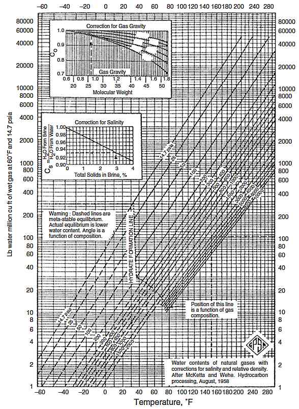 - Sales gas contracts and/or pipeline specifications often have to meet the maximum water content of 7 lb H2O per MMscf.