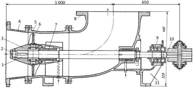 На рис. 8 представлена конструкция осевого насоса горизонтального исполнения.