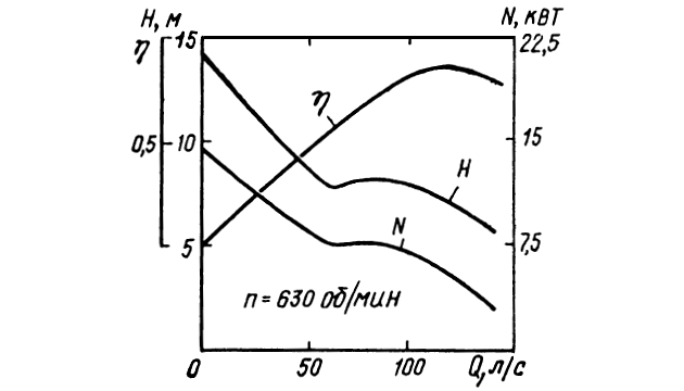 Характеристики осевых насосов обладают некоторыми особенностями. Как видно из рис. 6, основная характеристика H – Q насоса имеет седловатость.