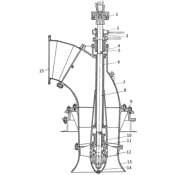 На рис. 7 показан вертикальный осевой насос типа О (ГОСТ 9366-80).