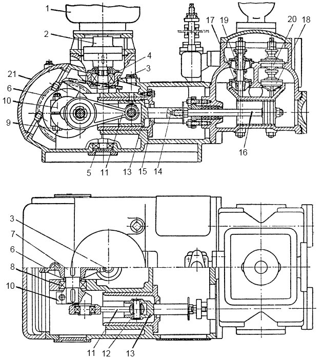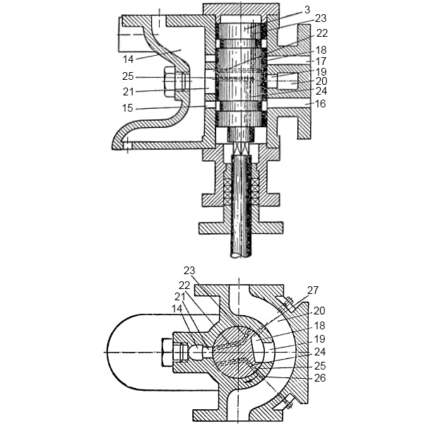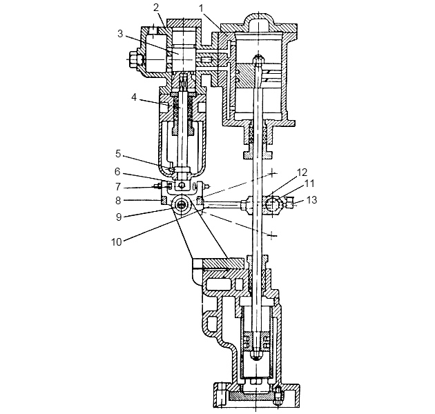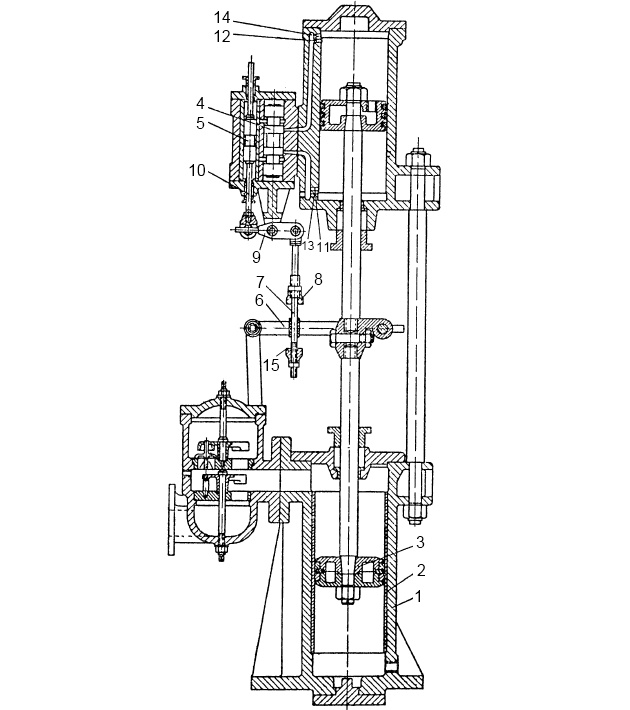 Нижняя полость сообщается с приемным трубопроводом, а верхняя – с нагнетательным. Средняя межклапанная полость сообщается с одной из поршневых полостей водяного цилиндра.