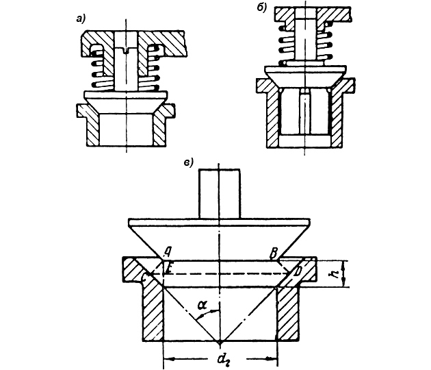 Для конических клапанов (рис. 12) необходима точная подгонка, строгая соосность и одинаковая конусность гнезда и клапана.
