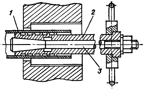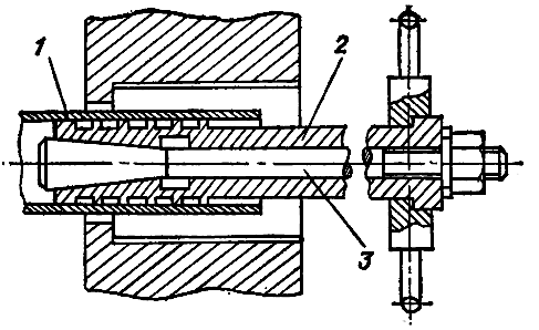 1 – трубка; 2 – распорная втулка; 3 – стержень с конусным наконечником