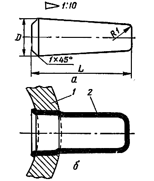Для заглушки труб используют конические гладкие пробки из мягкой стали или с конической резьбой из твердой стали, а также колпачковые заглушки. Гладкие пробки (рис. 2, а) устанавливают ударами молотка, а резьбовые – вращением ключом. Колпачковые заглушки (рис. 2, б) монтируют с помощью вальцовки.