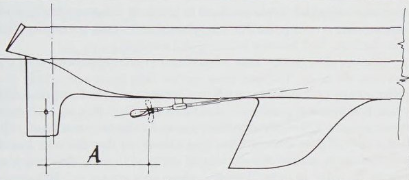 The line A (tangent to the breadth circle) gives a rough impression of the waves. The size of the angle with which it runs aft is determined by the boat’s beam. Therefore, line A permits rough estimations with regard to the yacht’s speed (shallow tangent). It also denotes whether it is narrow or wide, because the more acute the angle, the slimmer the boat.