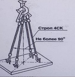 Какая минимальная грузоподъемность должна быть у стропа 4 СК при данном способе строповки и массе груза 10 тонн?