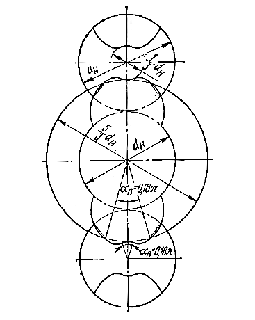 диаметр окружности впадин ведомого винта