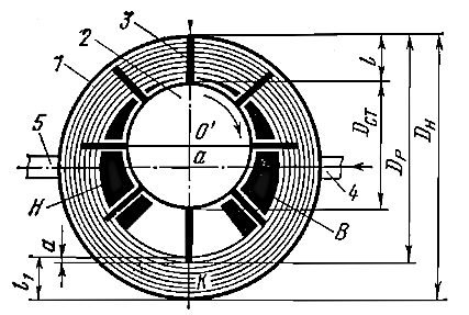 Отношение максимального радиуса поверхности статора к минимальному R/r принимается в пределах 1,15-1,35 тем меньше, чем меньше число пластин, которое составляет 8-16. Ширина ротора R равна 0,7 r, отношение наружного радиуса ротора к радиусу статора r0/r = 0,93 ÷ 0,94. Частота вращенияп ротора принимается равной частоте врашения приводного электродвигателя.