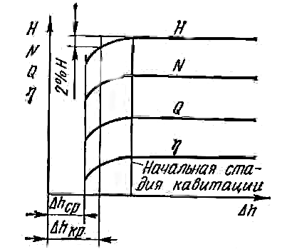 Влияние Δh на работу центробежного насоса можно проследить по его кавитационной характеристике, показанной на рис. 23.